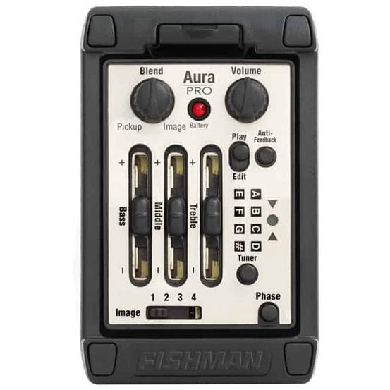 With the success of Aura Imaging Technology, guitar manufacturers asked to develop an Aura system that could be built into their top-tier acoustic-electric models. The Aura Pro is that product, and is now available to players everywhere. Onboard Aura systems include Fishman’s Aura Image Gallery software, a PC/Mac compatible application that allows users to access Images for hundreds of guitar makes and models through the free Aura Image library. Once installed on your PC or Mac, the software also allows Aura Images to be sorted, managed, and grouped. Users can then take advantage of the preamp’s open architecture by loading Aura Images via a USB cable.