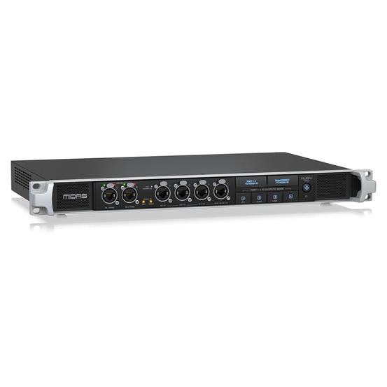 HUB4 PRO easily interfaces with the new Midas DL8 stage box, which makes bulky analog sub-snakes a thing of the past. The DL8 stage box can be connected to one of HUB4 PRO Ports 1-4 using only a simple CAT5E STP cable. This cable connection from HUB4 PRO can directly power up to 4 stage boxes via PoE support – IEEE802.3at per port – allowing for shorter analogue lines on stage.