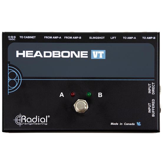 The Headbone VT is a specially designed switching device that lets you toggle between two tube amplifier heads using a single speaker cabinet. This provides the ability to experiment with different tonal options and perform without hauling two speaker cabinets to the gig.