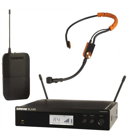 This pack includes the BLX4R wireless receiver, BLX1 bodypack transmitter, SM31 fitness headset microphone, power supply, clothing clip, windscreens, and user guide.