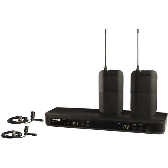 The Shure BLX188 / CVL Dual Lapel Wireless System offers a complete lapel mic setup for two people, and it integrates seamlessly with the BLX line of products and other Shure wireless systems. The BLX88 dual-channel receiver boasts an internal antenna to keep a sleek, low profile on your rack. Attach one of the two included body pack transmitters to your belt or other part of your clothing, and plug in one of the lavalier mics for a wireless mic setup that keeps your hands free without sacrificing comfort.