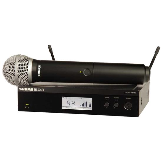 Included: BLX4R single channel half-rack wireless receiver with rack mount kit; BLX2 handheld transmitter with integrated PG58 cardioid dynamic microphone capsule; microphone clip; PS23 power supply and WA621 colour id caps (optional accessories).
