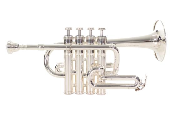 Piccolo trumpets are primarily used to play the exciting, yet demanding, 1st trumpet parts in Baroque literature. The 6810S features a small bore and bell size for superb tonal clarity and projection. It is easy to play, has a beautiful tone and excellent intonation. They are converted to either Bb or A by changing the leadpipes provided. A fourth valve adds an extended range.