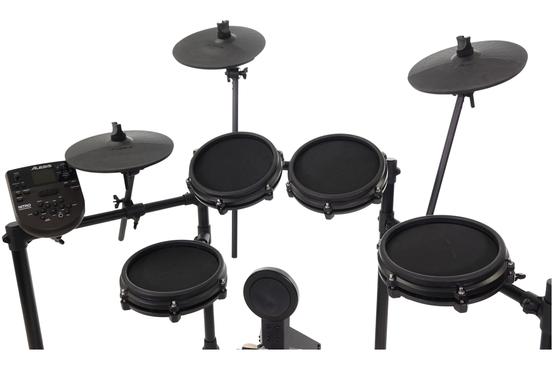 The Alesis Nitro Mesh is a complete 8-piece electronic drum kit centered around next-generation Alesis Mesh head drum technology. Mesh heads are the overwhelming preference of drummers when they play electronic kits because of their natural feel and ultra-quiet response. The Alesis Nitro Mesh features an 8" dual-zone mesh snare drum and (3) 8" mesh toms. It includes everything else you need to make a complete drum kit; (3) 10" cymbals, custom-designed Alesis hi-hat pedal and kick pedal, and a durable 4-post aluminum rack. We also include all the cabling, power supply and drum key for easy setup. All of this connects to the powerful Nitro electronic drum module with hundreds of percussion sounds, 40 different kits and 60 built-in play-along tracks.