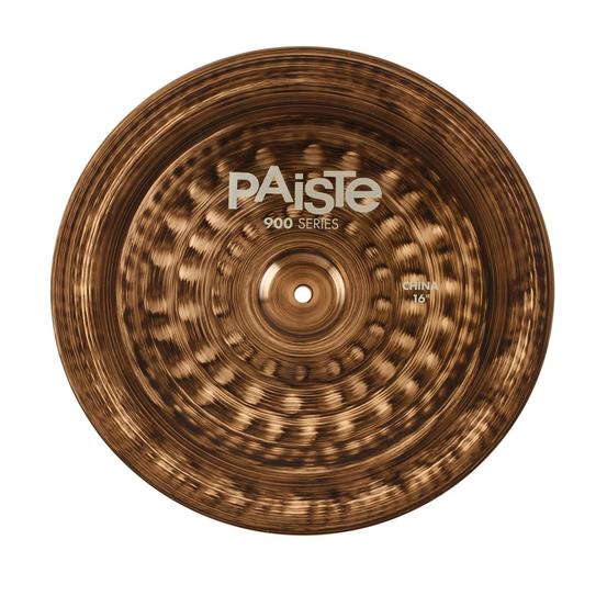Forged from legendary 2002 Bronze, the Paiste 900 Series 16" China Cymbal brings together Swiss precision and innovative design to create an instrument that balances raw power with refined musicality. This medium–thin weight cymbal undergoes sophisticated hybrid manufacturing, where traditional hand hammering and lathing techniques are enhanced by a special finish that darkens the surface and accentuates the grooves and hammer marks for a striking visual appeal.