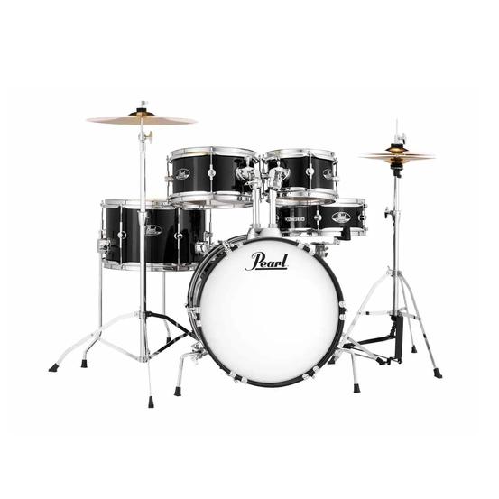The Pearl RSJ465C/C-31 Roadshow Junior 5-Piece Drum Kit in Jet Black offers young drummers a genuine musical instrument, not just another toy that resembles a drum set. Built with sturdy White Poplar shell construction, this comprehensive kit provides an exceptional, tuneable, and powerful playing foundation that follows in the footsteps of Pearl's acclaimed Roadshow series for beginning drummers.