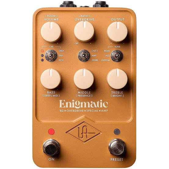 The Universal Audio Enigmatic '82 puts the legendary Overdrive Special amp tones right at your feet, giving you access to the coveted sounds that shaped guitar history. This pedal captures the essence of the Overdrive Special amps from three iconic eras—the '70s, '80s, and '90s—bringing you everything from shimmering cleans in Jazz mode to creamy, touch-sensitive overdrive in Rock mode. Whether you're navigating intricate chord work or soaring through expressive leads, the Enigmatic '82 responds to every nuance, delivering that fabled ODS sound that maintains clarity even at peak overdrive.