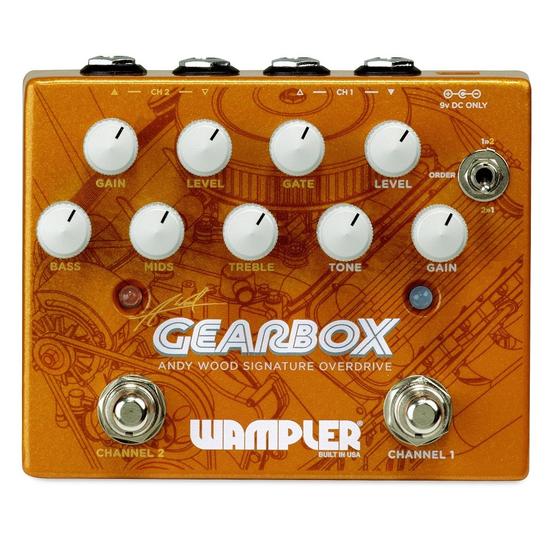 Gearbox features modified versions of two of Wampler’s best loved drive circuits: the Tumnus and the Pinnacle. This combination makes the Gearbox one of the most versatile dual pedals Wampler has ever created. A top-switchable stacking order control, dual inputs and outputs, a unique noise gate, premium quality components, along with a stunning finish, makes Gearbox THE single pedal solution that delivers.