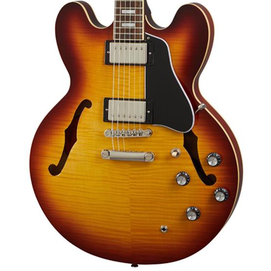 The ES-335 is Epiphone's version of the historic ES-335 that has been wowing guitar players all over the world for over six decades. From its inaugural appearance in 1958, the Gibson™ ES-335 set an unmatched standard. Our Epiphone ES-335 is no exception. It is simply one of the best deals today for guitar players who want the classic sound of an ES-335 at an accessible price. The ES-335 is crafted with a layered maple top, back, and sides coupled with a solid maple tone block to create the amazing sustain, warmth, and resonant tone that players crave in a semi-hollow instrument. Epiphone's Alnico Classic PRO™ Humbuckers deliver a wide range of vintage sounds while the rounded C neck profile is extremely comfortable and easy to play, and the headstock features the 60s style Kalamazoo shape.