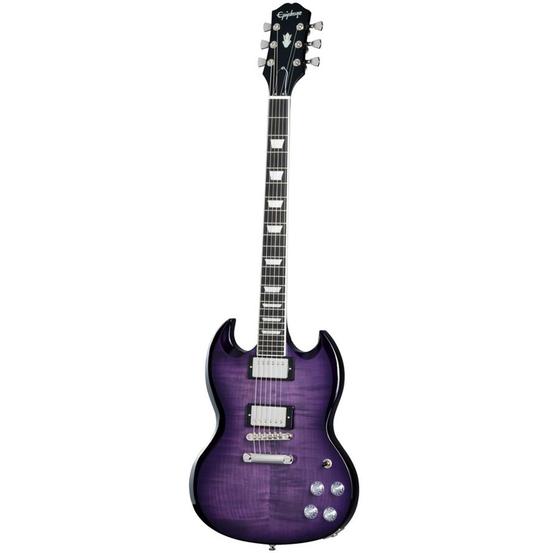 The SG Modern Figured from Epiphone’s Inspired by Gibson™ Collection has the classic SG ™ body profile made from mahogany and a 3/4” maple cap with an AAA-figured maple veneer.