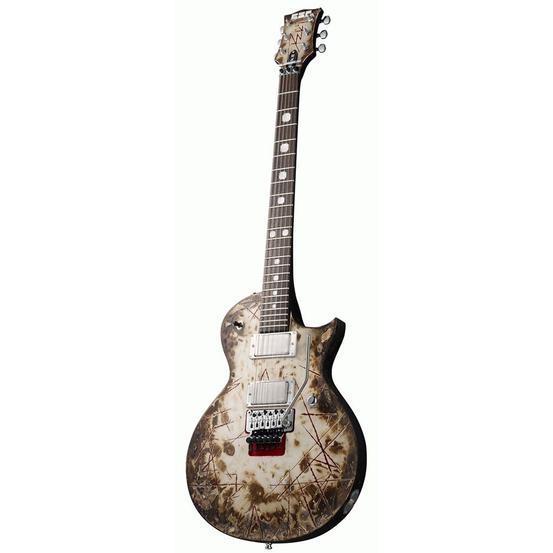 The ESP E‐II RZK‐II BURNT brings Richard Z. Kruspe’s brutal aesthetic and tone to a production model. Built in Japan, it uses the classic Eclipse shape but finished with heavy burn marks and deep distressing for a stage‐worn look straight out of a Rammstein show. It features an alder body with a neck‐thru maple neck for long, even sustain, plus a 25.5" scale and a rosewood fingerboard with 24 extra‐jumbo frets. Hardware is top‐tier: Gotoh tuners, ESP strap locks, a Floyd Rose Original, and a set of brushed‐chrome EMG 81 pickups that deliver sharp, aggressive attack.