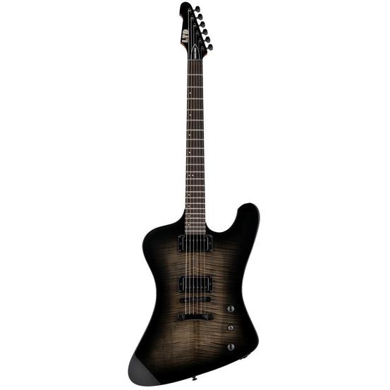 The ESP LTD PHOENIX‐200DX in Black Burst is built for guitarists who demand speed, comfort, and stage‐ready aesthetics without compromise. This Phoenix Series instrument combines the iconic Phoenix body shape with a poplar body and flamed maple top, finished in a head‐turning Black Burst that looks as aggressive as it sounds. The roasted maple neck and rosewood fingerboard provide a smooth, fast playing surface, while the 25.5" scale length and bolt‐on construction deliver classic tone and response.