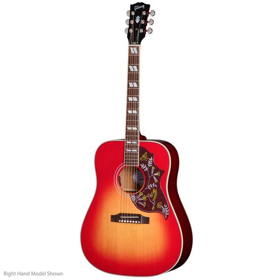 The Hummingbird's mahogany neck has a comfortable rounded profile and mother of pearl parallelogram inlays. This 'bird has a TUSQ® nut, saddle, and bridge pins, Grover® Rotomatic® tuners, and the iconic Hummingbird™ graphics on the pickguard. It's equipped with LR Baggs® VTC electronics, making it stage-ready and studio-friendly. A Gibson hardshell case is included to keep the Hummingbird safe wherever you take it.