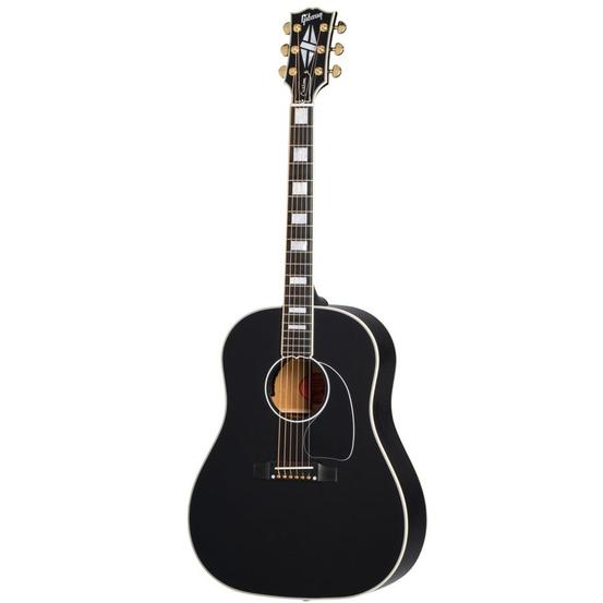 The J-45 Custom takes things to the next level with Les Paul™ Custom-inspired cosmetics, including an Ebony nitrocellulose lacquer finish, multi-ply binding on the top and back, a bound Les Paul-style peghead with a Custom split diamond inlay in mother of pearl, a bound ebony fretboard with mother of pearl Custom Block inlays, and gold Grover® Rotomatic® tuners. It comes equipped with L.R. Baggs™ Session VTC electronics and a hard-shell case.