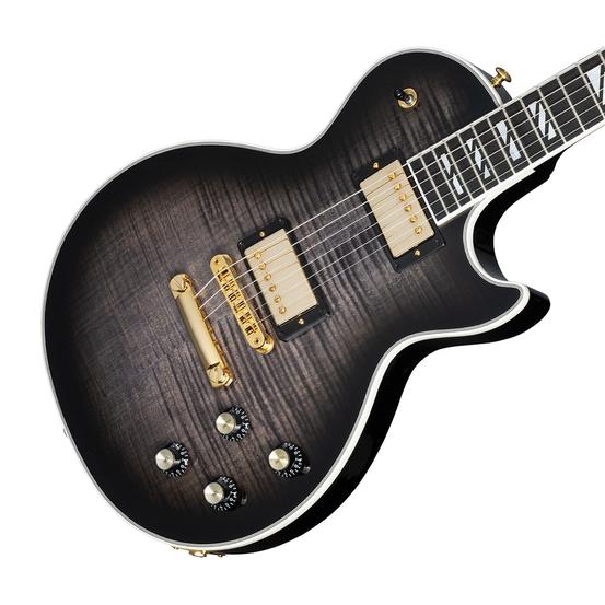 Gibson is excited to announce the return of the Les Paul™ Supreme. With a refreshed feature set, it is bound to overshadow everything else in sight and be one of the most exciting new releases of the year. It features a beautiful AAA-figured maple top on a mahogany body with Ultra-Modern Weight Relief. The mahogany neck has an ebony fretboard with a compound radius and Super Split Block mother-of-pearl inlays. The neck has a Modern Contoured Heel for exceptional upper fret access, and the headstock is adorned with a striking new mother-of-pearl inlay inspired by a design from the 1940s that was discovered in the Gibson archives. The Burstbucker™ Pro and Burstbucker Pro + pickups are paired with push/pull Volume and Tone potentiometers for flexible coil tap, phase, and Pure Bypass switching. The three gorgeous finishes are elegantly highlighted with gold hardware, making this not only a great-sounding and highly flexible instrument but also an exceptionally beautiful-looking modern rock machine. A hardshell case is also included.