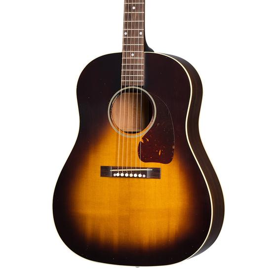 The allure and legend of the Gibson J-45™ live on in the new Murphy Lab 1942 Banner J-45. Inspired by the holy grail of vintage acoustic instruments, luthiers in Montana meticulously crafted a J-45 just like the most popular and celebrated version in structure and components. The new 1942 Banner J-45 includes a Thermally Aged Adirondack red spruce top hand-sprayed with a historic-style burst, hot hide glue top bracing for better tonal response, and a bone nut and saddle. It features Light Aging by the skilled artisans of the Murphy Lab. The Murphy Lab Light Aged finish treatment, paired with lightly aged hardware, simulates decades of light play wear, giving it the unique character, vibe, and feel of an original example from the Gibson Golden Era.