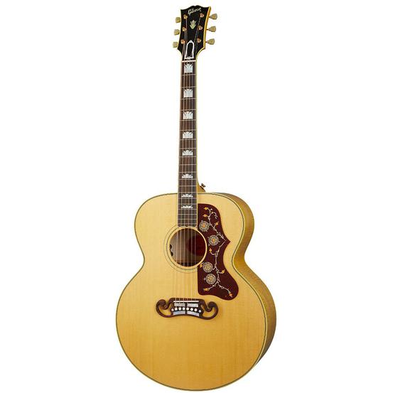 The Gibson SJ-200 is the world's most famous acoustic guitar and earned its designation as the "King of the Flat-Tops." Since its release in 1937, its wide use by American artists of this century has made the Super Jumbo one of the most widely played acoustic guitars of our time. The most striking features of the new SJ-200 Original include the carved four bar Moustache bridge, an engraved tortoise pickguard, mother-of-pearl crown fretboard and headstock inlay, and exquisite flamed maple back and sides. The SJ-200 is an American original with its shape and elegant appearance.