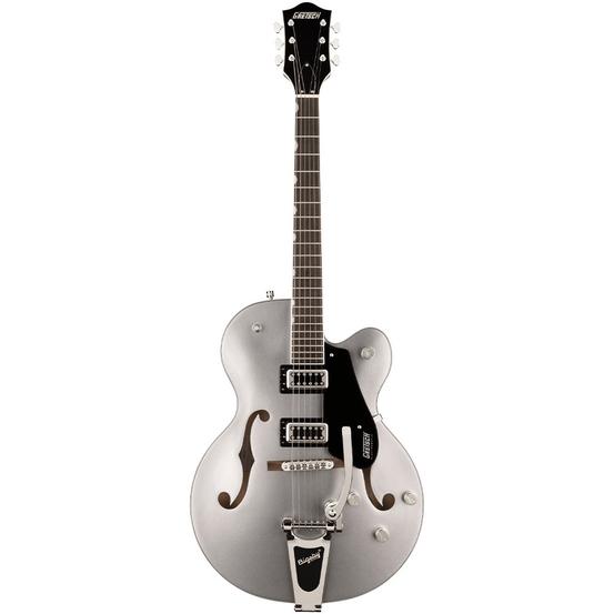 Alive and resonant, the G5420T also features a versatile upgraded control layout including master volume with treble bleed circuit, master tone, individual pickup volume controls and three-position pickup toggle switch, oversized bound F-holes, multi-ply body binding, smaller late-'50s G6120 bound headstock, vintage-style open-back tuning machines, Graph Tech® NuBone® nut, pearloid Neo-Classic™ thumbnail inlays, secured Adjusto-Matic™ bridge and a Bigsby® B60 vibrato tailpiece.