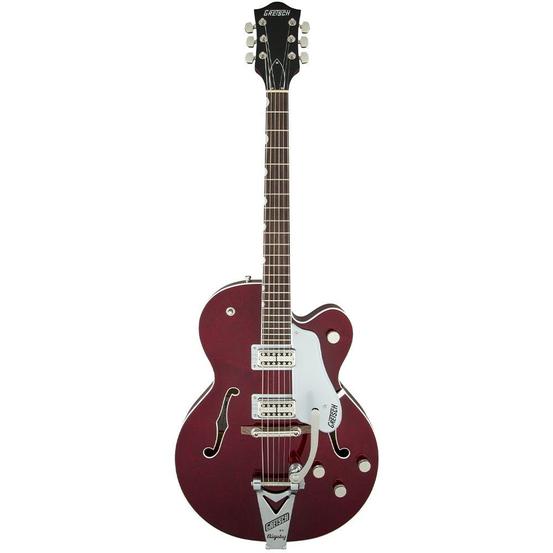 This guitar boasts stage-stealing style with five stunning finishes—Aspen Green, Azure Metallic, Black Gold, Cadillac Green and Orange Stain—and gleaming gold pickguards and hardware, including the Bigsby® B70 vibrato tailpiece, anchored Adjusto-Matic™ bridge and G-arrow knobs.