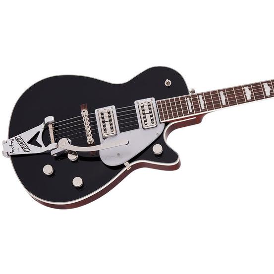 Other features include a set maple neck, 12”-radius rosewood fingerboard with pearloid Hump Block inlays, bone nut, G-arrow knobs, Bigsby® vibrato tailpiece, Adjusto-Matic™ bridge with pinned rosewood base and Gotoh® tuners.