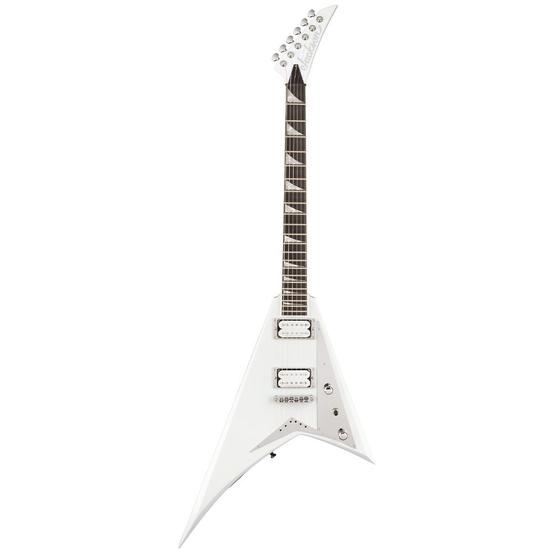 The MJ Series Rhoads RRT boasts classic metal style in a Snow White finish with white pointy headstock, chrome pickguard and chrome hardware.