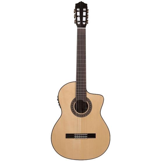 Solid European spruce soundboard coupled with solid mahogany back and sides that will grow with your playing to enrich the sound of this beautiful instrument. Rich mids and warm tones are characteristic of the MCG-115. Cutaway and Fishman electronics make it a perfect performance instrument. Comes with a beautiful hardshell case.