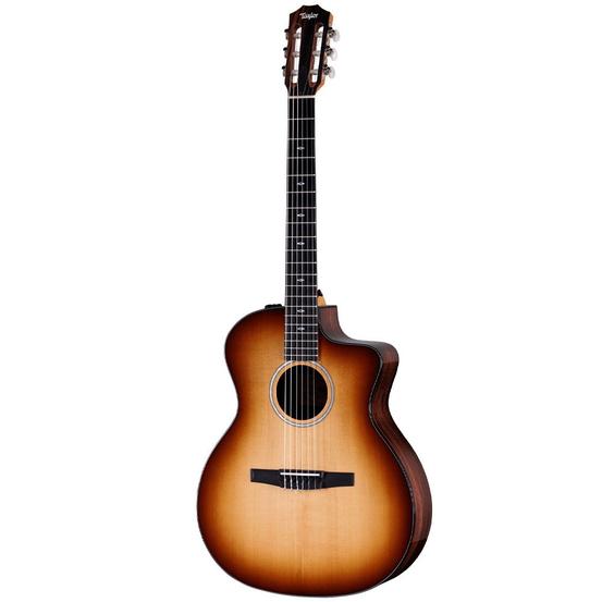 Offering exceptional comfort and playability, a slim Taylor neck with a 1‐7/8" nut width makes the transition from steel to nylon strings smooth and approachable. Aesthetic details include a golden‐brown Sunset Edgeburst, full‐body gloss finish, Italian acrylic diamond inlays, and a custom label inside.