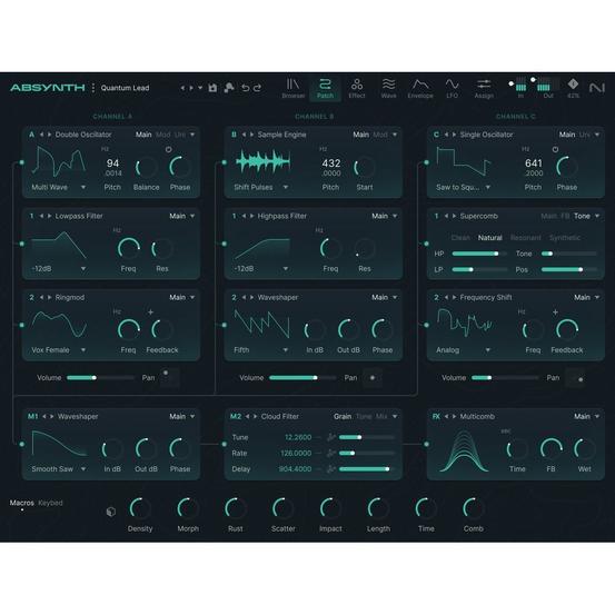 Built for modern workflows, Absynth 6 is fully backward‐compatible with earlier versions and integrates tightly with Kontrol keyboards and Maschine. MTS‐ESP microtuning unlocks new harmonic systems, while the visual browser accelerates preset discovery. With streamlined routing, comprehensive modulation, and robust format support, it's an expressive powerhouse for contemporary music, sound art, and scoring.
