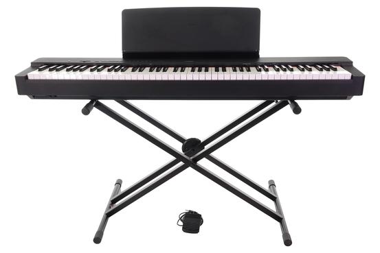 4 ⭐⭐⭐⭐ This Yamaha P-225 Portable Digital Piano has been thoroughly tested and serviced by our music experts to ensure perfect functionality. While there are minor signs of wear, they do not affect performance. The photos show the actual piano, ensuring transparency and trust in our process. Includes: Mains power supply, sheet music rest, x-stand, sustain pedal