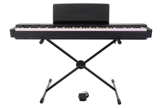 4 ⭐⭐⭐⭐ This Yamaha P-225 Portable Digital Piano has been thoroughly tested and serviced by our music experts to ensure perfect functionality. While there are minor signs of wear, they do not affect performance. The photos show the actual digital piano, ensuring transparency and trust in our process. Includes: power supply, sheet music rest, X-stand and sustain pedal.