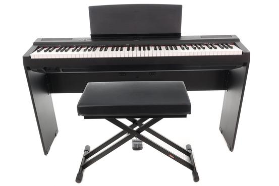 This Yamaha P125B is in great physical and working condition and shows only minimal general wear attributable to prior use. Included is a stool, sustain pedal, stand, music rest and a power supply. This is a standalone audio product that is equipped with USB connectivity and does NOT include support for any related extended features such as online content or user registration. This kit does NOT include a user manual.
