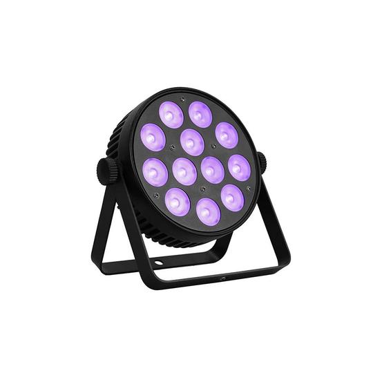 PAR12X4UVL is a dedicated UV Parcan featuring a sturdy, fanless aluminium housing. This UV parcan is sure to bring the party vibe with 12 punchy 4W UV LEDs.