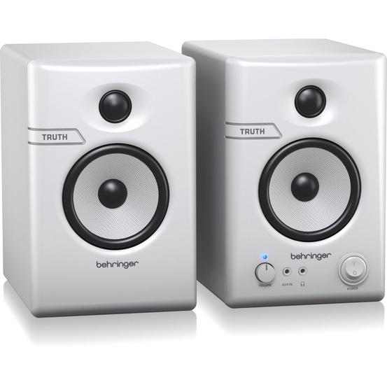 Sporting 3.5" glass–fiber woofers and 1" silk–dome tweeters, TRUTH 3.5 BT–WH monitor speakers bring high– quality audio within the reach of anyone with a computer workstation. Whether you're a musician tracking your latest masterpieces or just someone who listens to your favorite songs at work, TRUTH 3.5 BT–WH will make them sound much better. Front–mounted volume and individual bass and treble controls make accurate sound adjustments a breeze.
