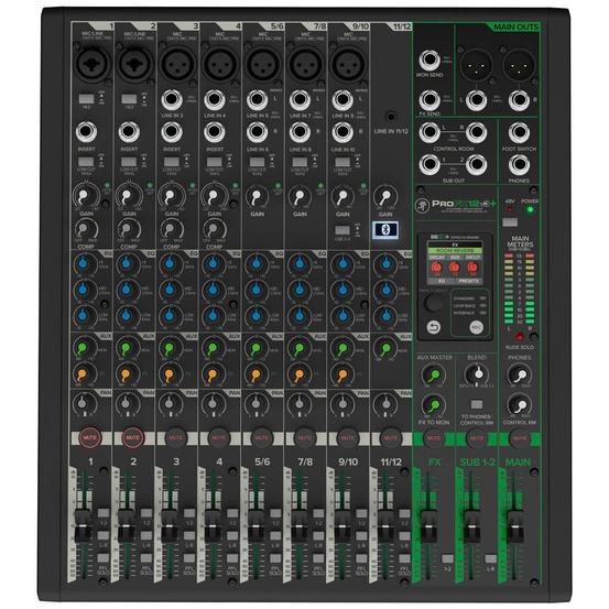 The Mackie ProFX12v3+ takes everything musicians, content creators and engineers love about the original ProFX series and dials it up. This professional 12-channel analog mixer adds upgraded GigFX+ digital effects, USB-C connectivity, and built-in Bluetooth® integration, giving you the perfect blend of analogue warmth and modern workflow flexibility for studio sessions, livestreams, podcasts and live gigs.