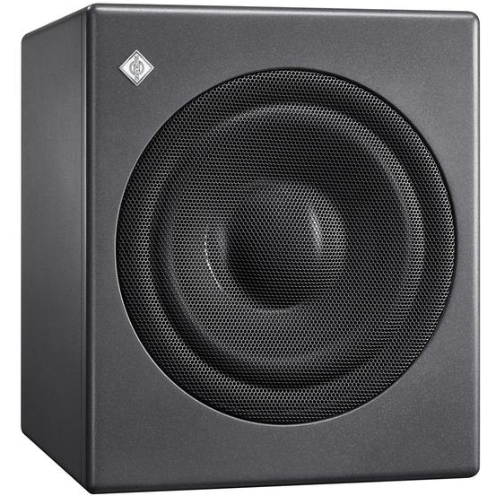The newly designed 10” long-throw driver has a large magnet, linear motor design and a very stiff pressed steel basket. As subwoofers are usually placed on the floor, a robust grille protects the driver from accidental damage. The well-braced cabinet is a sealed designed which brings the fastest possible transient response. The two analog XLR inputs are balanced as are the two analog XLR outputs. The 192 kHz / 24-bit digital input can accept AES3 and S/P-DIF signals. There is a bypassable standby function and the switch-off time can be adjusted in Neumann.Control.