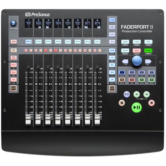 Rather than search around a computer screen with your mouse, mix sounds on the fly when you incorporate the PreSonus FaderPort 8 eight-channel mix production controller. Zoom in on audio files with lightning speed thanks to eight touch-sensitive, motorised faders and 57 buttons that cover 78 separate functions. This lets you go straight from recording to editing, adjusting the tempo, modifying plug-ins, controlling track levels and managing auxiliary mixes without having to hunt-and-peck for things on a computer screen. Just touch the appropriate button, and you're set for whatever function you need.