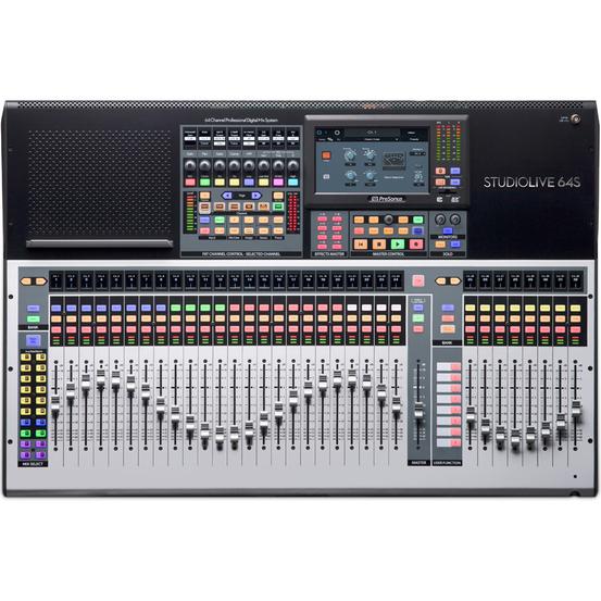 The StudioLive 64S is a 64-channel mixer that brings the power of a large format console to small format digital mixing. Powered by the new quad-core PreSonus FLEX DSP Engine, the StudioLive 64S digital mixer is equipped with 76 mixing channels, 43 mix buses, and 526 simultaneous processors—including 8 stereo reverberation systems, and Fat Channel plug-in models on every input channel and mix bus. With 128 (64X64) channels of USB recording, 128 channels of AVB I/O, flexible routing options, and the studio-grade audio quality that made StudioLive mixers famous, the StudioLive 64S delivers a truly exceptional mixing experience that's in a class of its own.