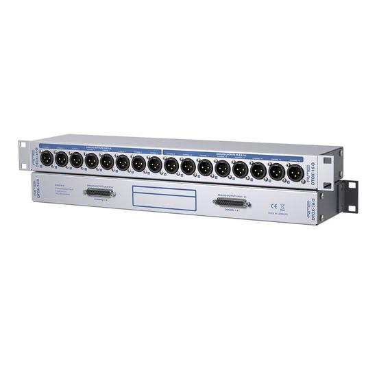The RME DTOX-16 breakout boxes are the perfect rack solutions for interconnecting analog multichannel XLRs with the common D-sub 25 connector format. DTOX-16 O connects 16 XLR outputs to two D-sub 25-pin connectors (channels 1-8 and channels 9-16). The breakout panel supports all interfaces using an analog 25-pin D-sub output as well as the following RME interfaces: M-32 DA, M-16 DA, M-32 Pro AD, M-32 Pro DA.