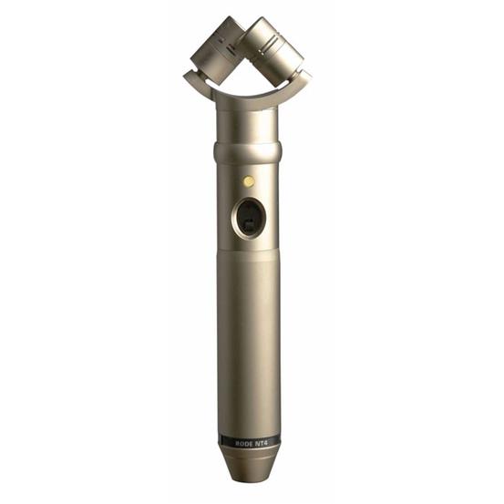 Provide your studio with a perfect X/Y stereo array with the Rode NT4 stereo microphone, and save on the cost of extra microphones and other complex equipment. With a matched pair of half-inch cardioid condenser capsules aligned 90 degrees, the NT4 microphone creates a stereo array suitable for drum overheads, choir vocals and environmental recording. Able to run on a 9V battery along with 48V phantom power, this versatile mic ships with both stereo XLR and 3.5mm minijack cables, so you can start mixing right after recording. Further, the Rode NT4 is backed by a 10-year warranty to give you peace of mind.