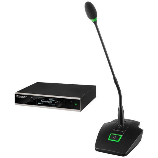The set comes with rechargeable accupacks with up to 10 hours of operating time. All devices of the SL Tablestand 153-S DW Set can be monitored and controlled with the Sennheiser Control Cockpit.