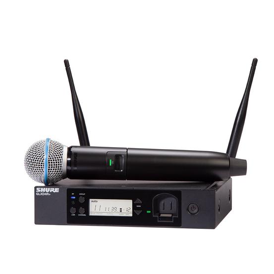 Featuring the industry standard BETA58A vocal microphone, the new half-rack GLXD24+/B58 Dual Band Vocal System delivers superior, transparent digital audio. The perfect combination of the automatic frequency management with the new Dual Band Technology provides reliable and consistent performance while Shure proprietary Lithium-Ion rechargeable batteries provide up to 12 hours of use. Go wireless without complication.