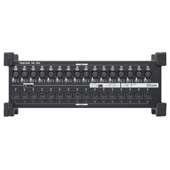 Offering the same performance and hardware quality as TASCAM Sonicview mixers, TASCAM SB-16D Dante-networked 16-in/16-out stage boxes offer all the advantages of Dante networking, combined with seamless integration with TASCAM Sonicview mixers. The stage boxes can be used as a floor stage box or rack mounted, and multiple stage boxes can be used simultaneously in a Dante network.