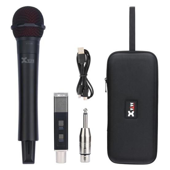 Xvive's M5 is a compact 5.8 GHz digital wireless microphone system built for stage performers, presenters, teachers, and livestreamers who need straightforward, portable RF connectivity. The system ships with a handheld transmitter housing an interchangeable capsule connector—compatible with industry-standard mic heads from Shure®, Electro-Voice®, Heil Sound®, Telefunken®, Lectrosonics®, Lewitt®, and Austrian Audio®—plus a receiver, XLR-to-6.35 mm adapter, USB charging cable, and hard carry case. Channel 0's auto-sync mode scans the local RF environment to maintain stable connection without manual frequency selection.