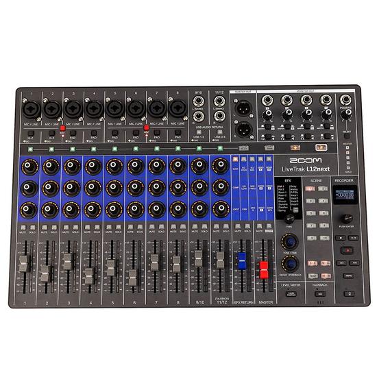 The L12next combines the power of a digital mixer with analog-style operation. Three knobs per channel can deliver High/Mid/Low EQ control. With a simple switch you can also adjust gain, pan, and sends, offering hands-on mixing, just like an analog console.