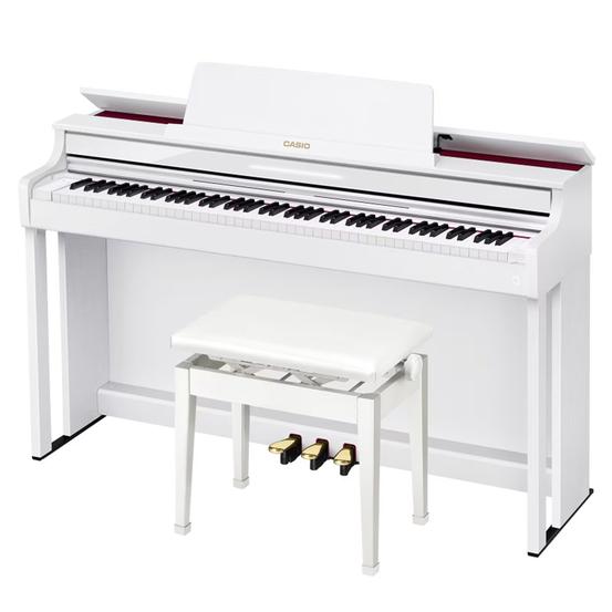 The AP-550’s generously-sized pedals are based closely on the design and operation of grand piano pedals. Freedom of expression is preserved with a continuously variable damper pedal and two-level soft pedal, allowing you to select your desired amount of sustain and soft effects at any given time. The AP-550 is a graceful and luxurious addition to any space in your choice of Black, White, and striking Rosewood finishes. With its handsome cabinetry, gentle curves, and thoughtful details such its reflective front panel and gold-trimmed soft-close key cover, the AP-550 lends traditional piano elegance in a fraction of the space of a full-size grand. The included WU-BT10 Bluetooth Audio and MIDI Adapter opens up a whole world of wireless communication with your favourite apps. Use the Casio Music Space app to adjust your piano's settings, view and annotate sheet music, work with audio files, and much more. With Bluetooth audio, the AP-550 becomes a powerful, rich, and clear speaker system that easily fills any room, and begs you to play along.