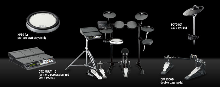 The DTX450K features 10 custom drum kits and training functions with a newly developed 3-zone snare pad and real bass drum pedal action.